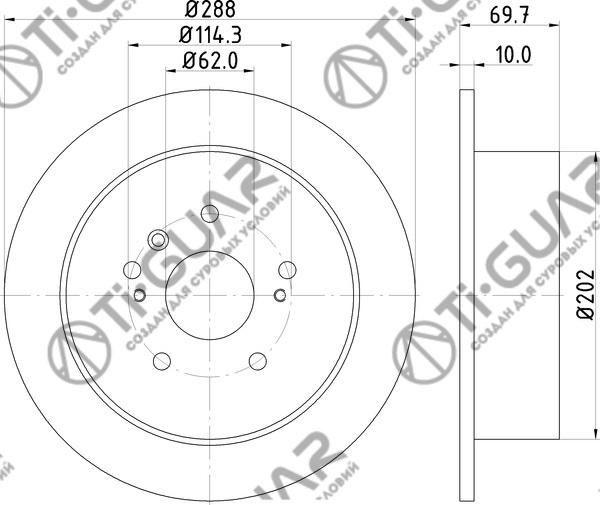 Диск тормозной /задний /TI-GUAR для Lexus RX330 RX350 RX450 MCU,GSU3# 2003-; 288/10мм; TG-42431-0E010 ST- 08.A111.10 K011619 RN1255